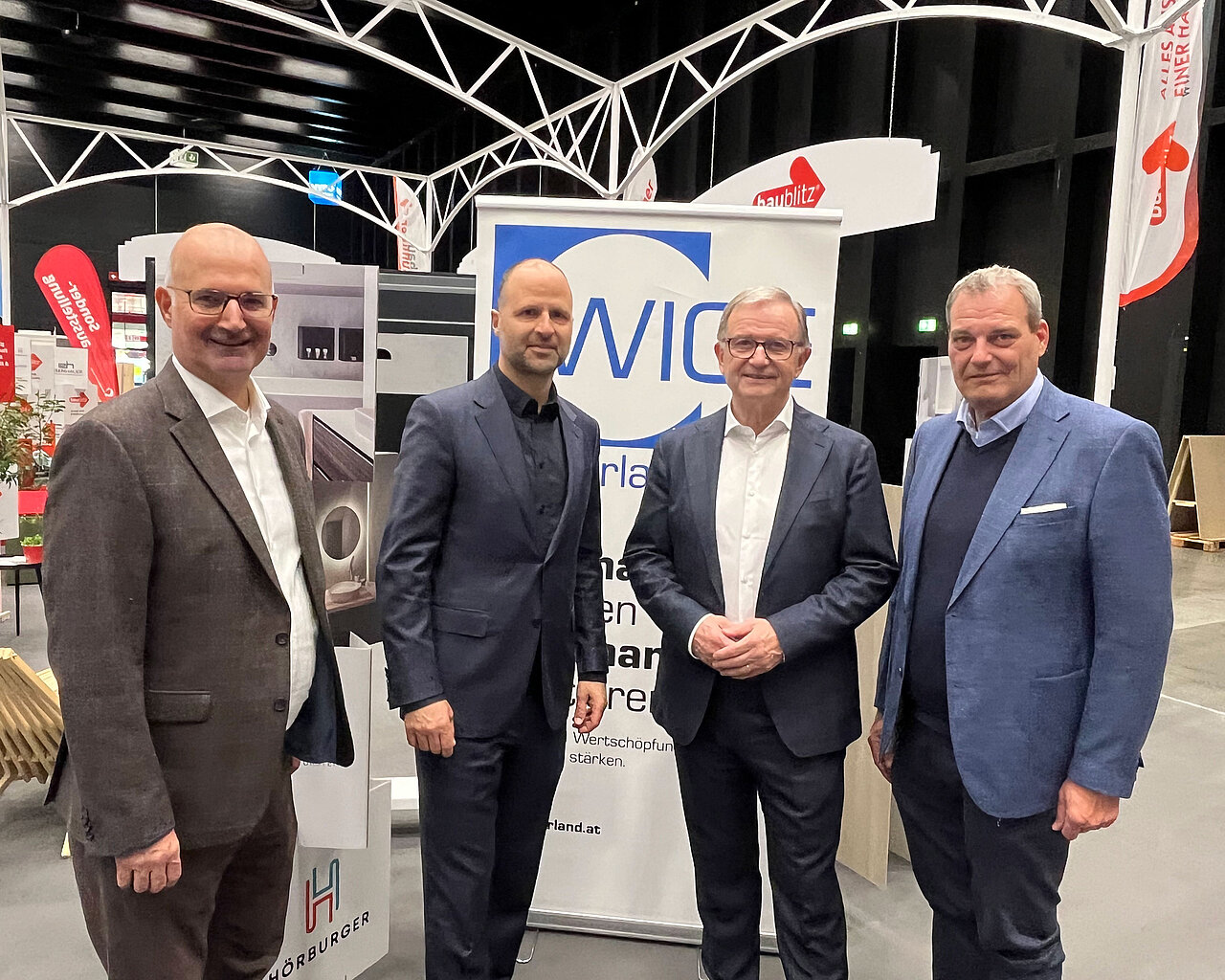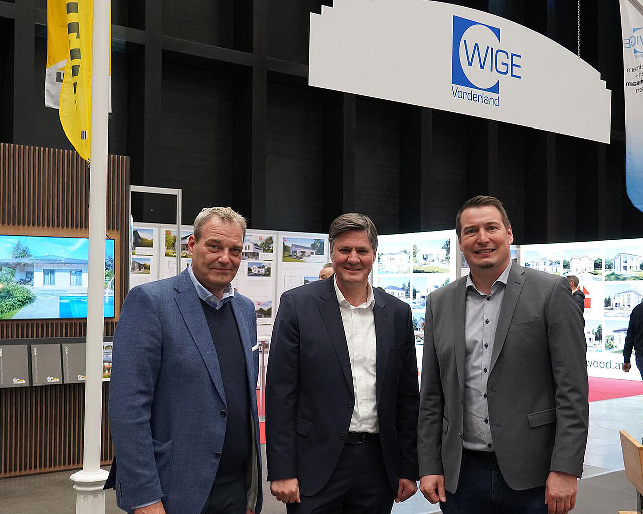 Der Gemeinschaftsstand der WIGE Vorderland bot einen breiten Überblick über aktuelle Entwicklungen rund ums Bauen, Sanieren und Gestalten. Die Besucherinnen und Besucher erhielten Einblicke in moderne Energielösungen, innovative Haustechnik, nachhaltige Baukonzepte und hochwertige Materialien für Innen- und Außenbereiche.