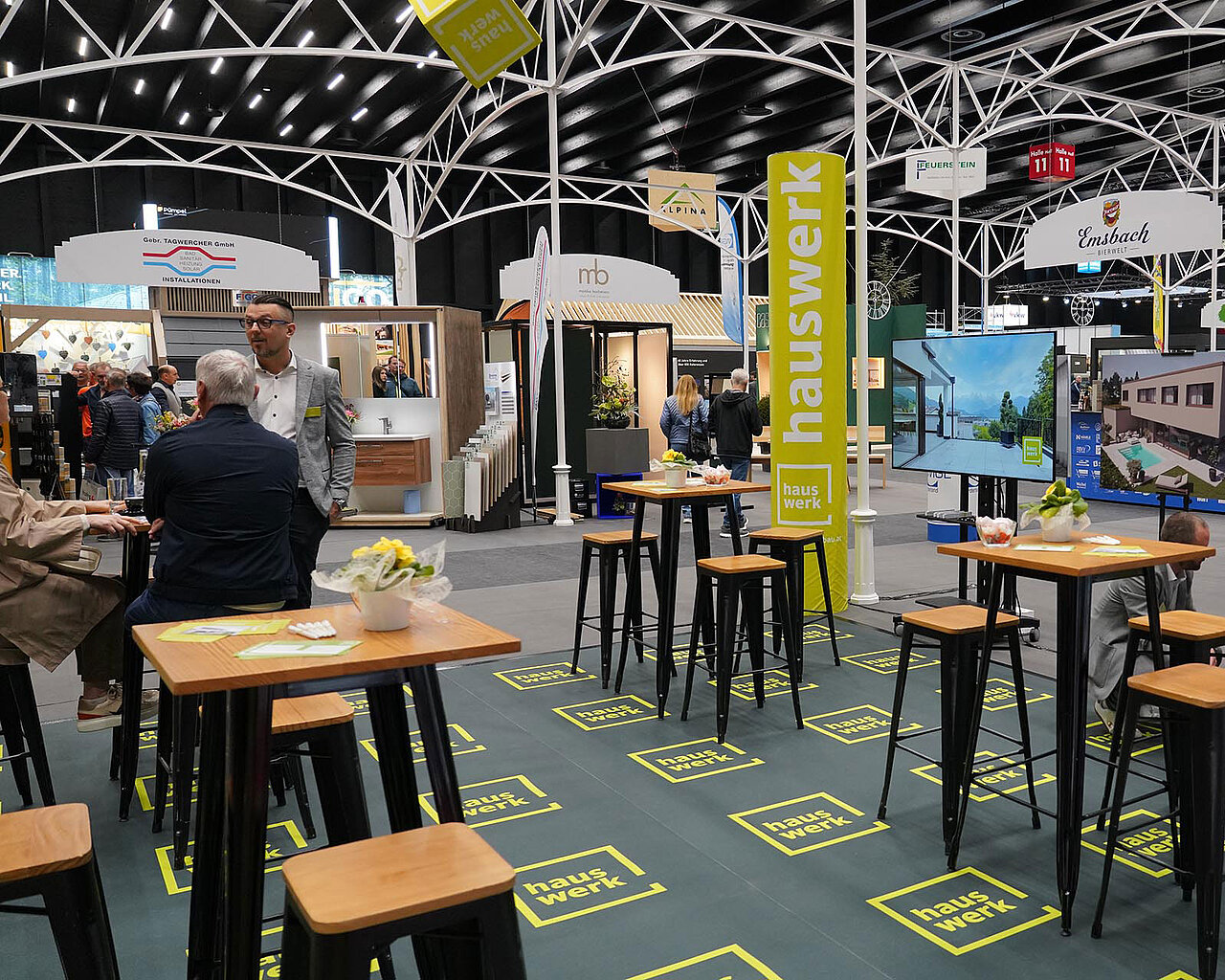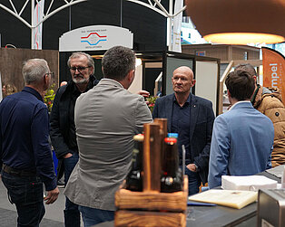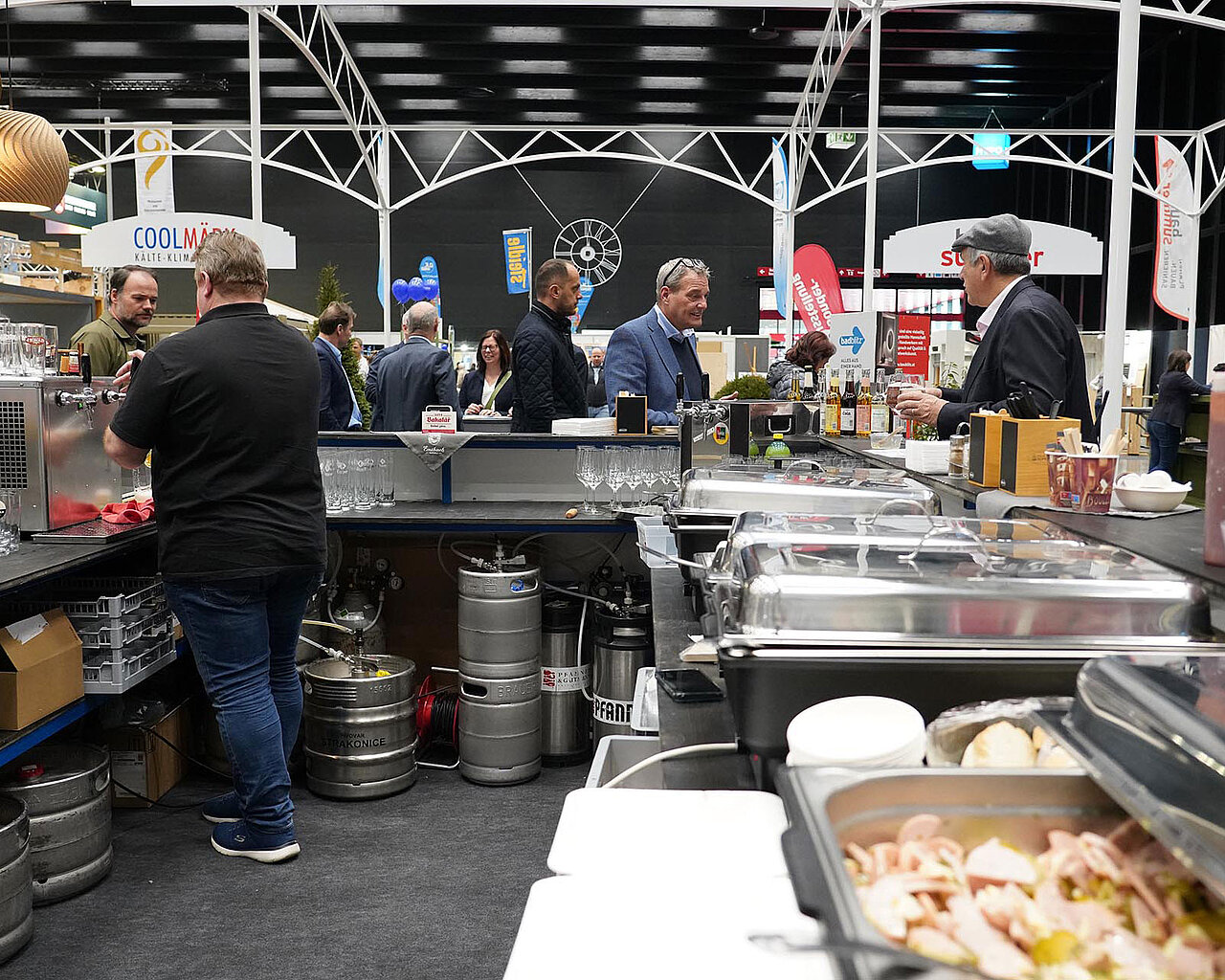 Ein wichtiger Treffpunkt am Stand war erneut die zentrale Bar. Sie bot den passenden Rahmen für Gespräche, Begegnungen und den Austausch zwischen Besuchern und Ausstellern. Für die kulinarische Begleitung sorgte wiederum das Gasthaus Emsbach aus Hohenems, das mit regionalen Spezialitäten und Bierspezialitäten zum Verweilen einlud.